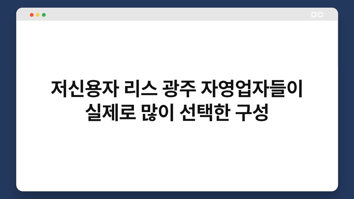 지금 저신용자 리스와 관련된 다양한 옵션을 찾고 계신가요? 광주 지역의 자영업자들이 실제로 많이 선택한 구성에 대해 이야기해 보겠습니다. 특히, 황제오토플랜은 저신용자에게도 적합한 리스 상품을 제공하며, 자영업자들에게 큰 도움이 되고 있습니다. 이 글에서는 저신용자 리스의 장점과 광주 자영업자들이 선택하는 이유를 살펴보겠습니다.