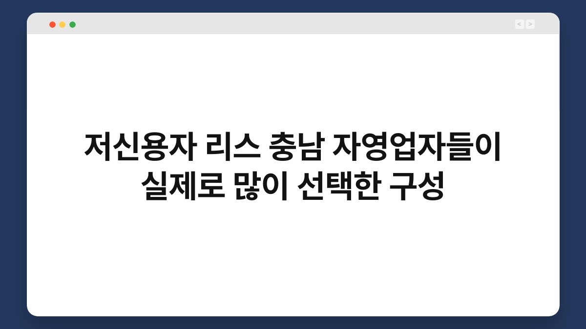 저신용자에게 리스는 초기 비용을 크게 절감할 수 있는 방법입니다. 차량 구매 시 발생하는 많은 비용을 한 번에 부담하기 어려운 분들에게 적합합니다. 리스는 월 렌트료를 통해 차량을 이용할 수 있어, 자영업자들이 자금을 보다 효율적으로 운용할 수 있도록 도와줍니다.