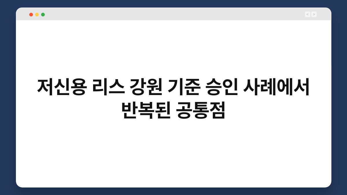 강원 지역에서 저신용 리스가 승인된 사례를 살펴보면, 몇 가지 공통된 특징이 있습니다. 첫째, 소득 증명이 중요한 역할을 합니다. 리스 신청 시, 안정적인 소득을 증명할 수 있는 자료가 필요합니다. 둘째, 기존 신용 기록이 긍정적일 경우 승인 가능성이 높아집니다. 신용 점수가 낮더라도, 최근의 긍정적인 거래 내역이 도움이 됩니다.