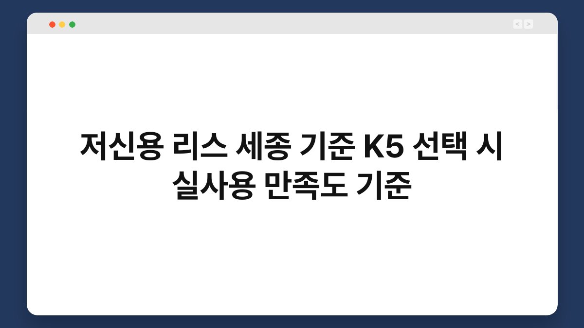 ✅ 저신용 리스는 세종 기준 K5 선택 시 실사용 만족도에 큰 영향을 미칩니다.