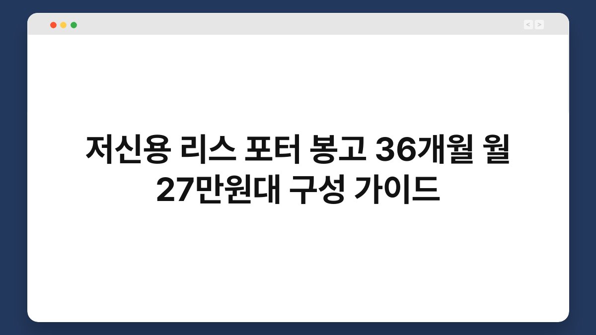 포터 봉고는 소형 화물차로, 다양한 용도로 활용할 수 있어 많은 사람들이 선호합니다. 특히, 저신용 리스 상품으로 36개월 동안 월 27만원대에 이용할 수 있는 옵션은 매우 매력적입니다.