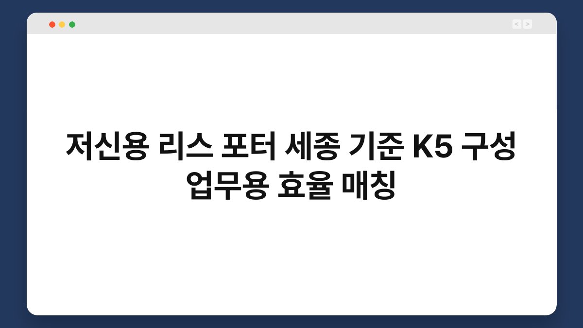 운전이 필요한데 저신용으로 고민하고 계신가요? 업무용 차량이 필요하지만 리스나 장기렌트에 대한 정보가 부족하신가요? 오늘은 저신용 리스와 포터, 세종 기준의 K5 구성에 대해 알아보겠습니다. 특히, 황제오토플랜을 통해 효율적으로 차량을 매칭하는 방법도 소개해드릴게요. 이 글을 통해 차량 이용에 대한 고민을 덜어드리겠습니다.