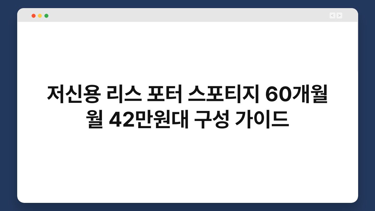 포터는 실용성과 경제성을 갖춘 차량으로, 상업용으로 많이 사용됩니다. 반면 스포티지는 가족 단위의 사용에 적합한 SUV로 인기를 끌고 있죠. 두 차량 모두 60개월 동안 월 42만원대의 리스 조건으로 제공되며, 이를 통해 저신용자도 부담 없이 차량을 이용할 수 있습니다.