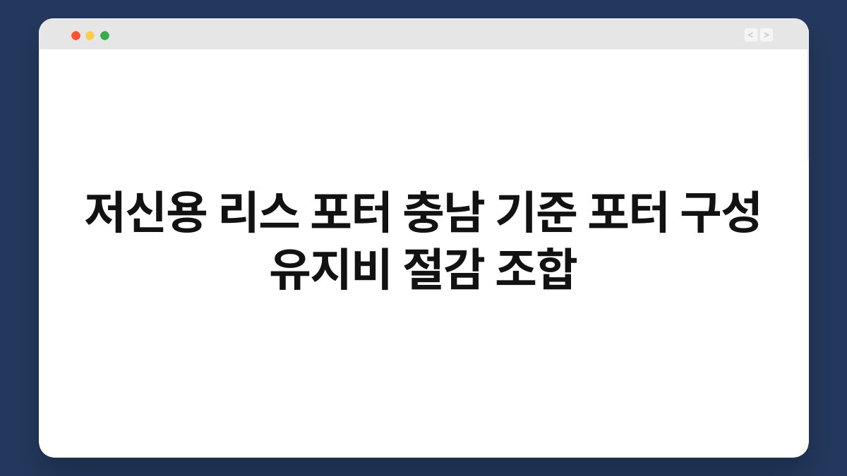 저신용자에게 차량을 소유하는 것은 큰 도전이 될 수 있습니다. 하지만 저신용 리스는 이런 문제를 해결해주는 훌륭한 대안입니다. 리스는 소유가 아닌 사용 개념으로, 초기 비용이 적고 월 납입금이 저렴해 부담을 줄일 수 있습니다. 특히 충남 지역에서는 저신용자에게 맞춤형 솔루션을 제공하는 업체들이 많아, 선택의 폭이 넓습니다.