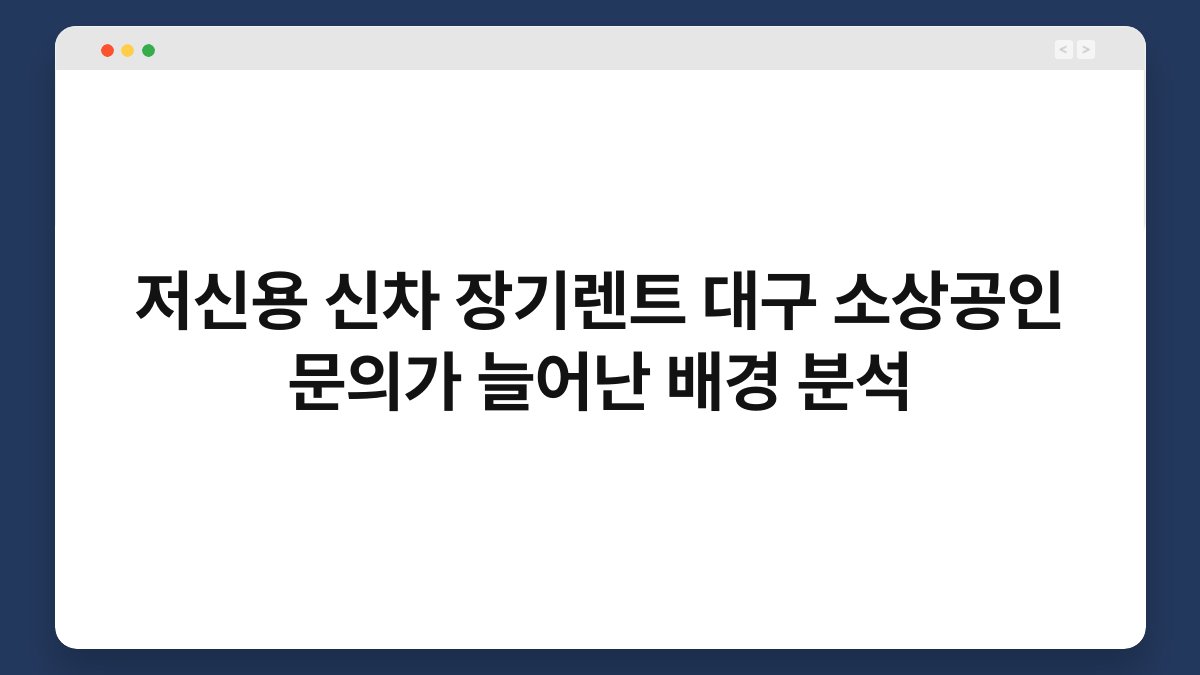 대구의 소상공인들은 경제적 불황 속에서 자금 압박을 느끼고 있습니다. 이러한 상황에서 차량 구매는 큰 부담이 됩니다. 장기렌트는 이러한 부담을 덜어주는 대안으로 떠오르고 있습니다.