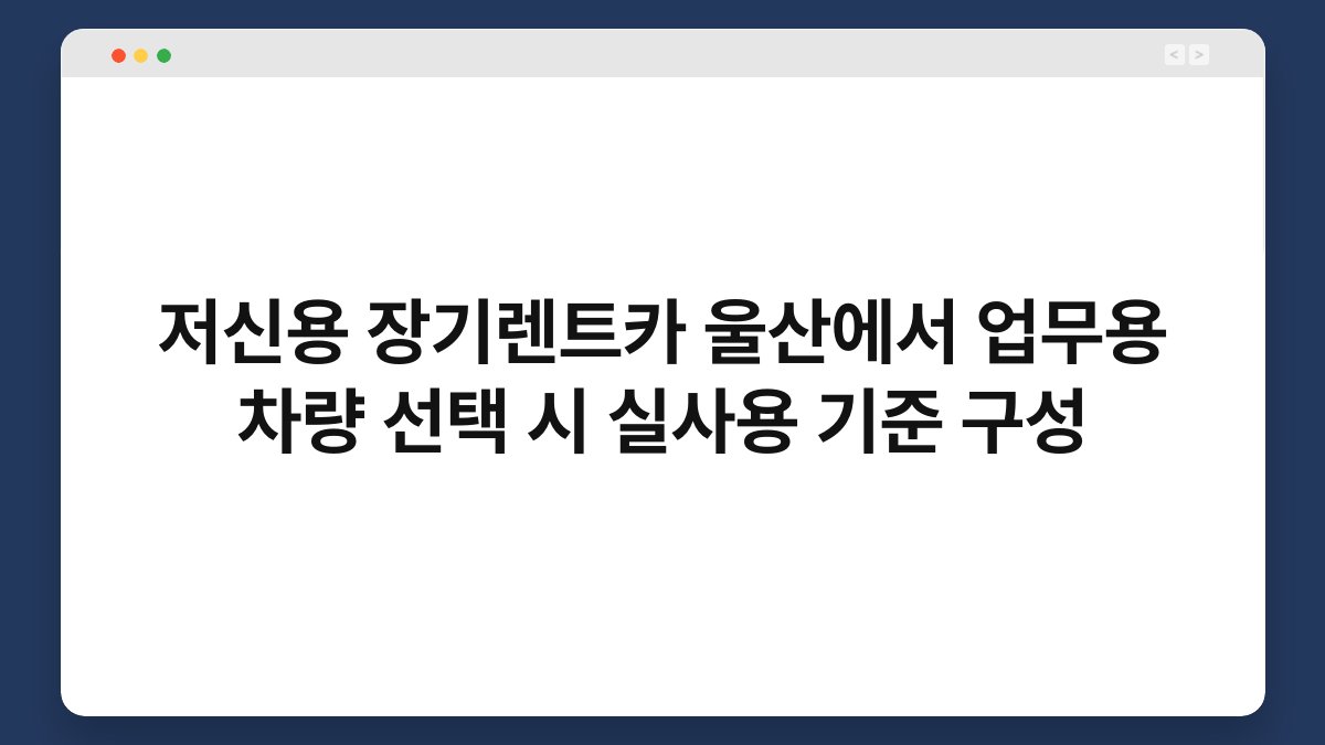 ✅ 울산 지역에서의 저신용 장기렌트카 조건