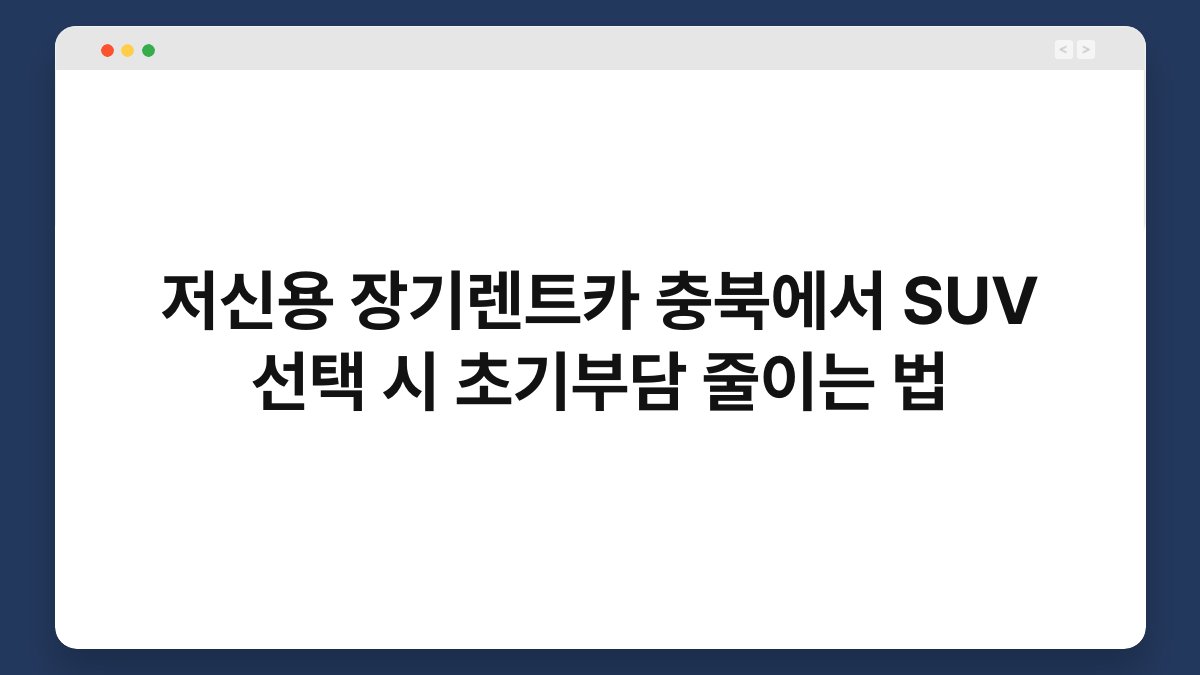 차량을 소유하고 싶지만 저신용으로 인해 고민하고 계신가요? 특히 충북 지역에서 SUV를 선택할 때 초기 부담을 줄이는 방법이 있다면 얼마나 좋을까요? 이번 글에서는 저신용 장기렌트카를 이용해 SUV를 선택하는 팁과 함께 황제오토플랜의 장점을 소개하겠습니다. 차량 구매나 렌트에 대한 정보가 부족한 분들에게 유익한 내용이 될 것입니다. 함께 알아보도록 하겠습니다.