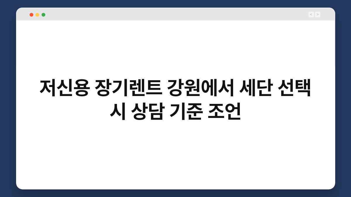저신용 장기렌트는 신용등급이 낮은 고객이 차량을 장기간 이용할 수 있는 서비스입니다. 신용등급이 낮아도 차량을 이용할 수 있는 기회를 제공하므로, 많은 분들이 선택합니다. 특히 강원 지역에서는 이러한 서비스가 더욱 필요합니다.