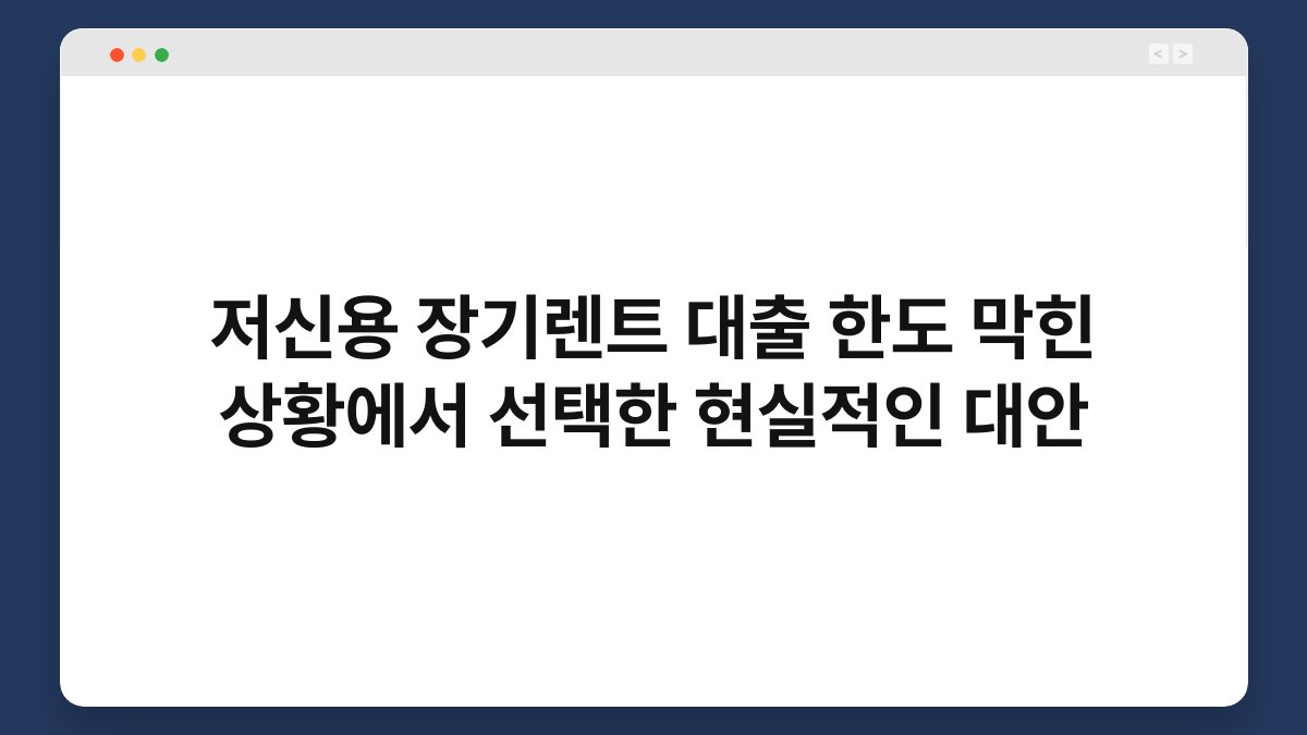 ✅ 저신용 장기렌트는 대출 한도가 낮은 분들에게 유용합니다.
