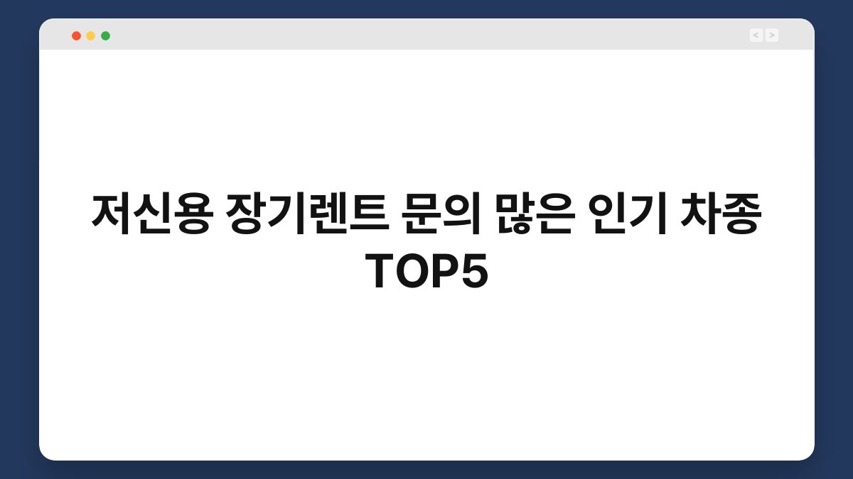 ✅ 저신용 장기렌트에 인기 있는 차종 TOP5를 소개합니다.