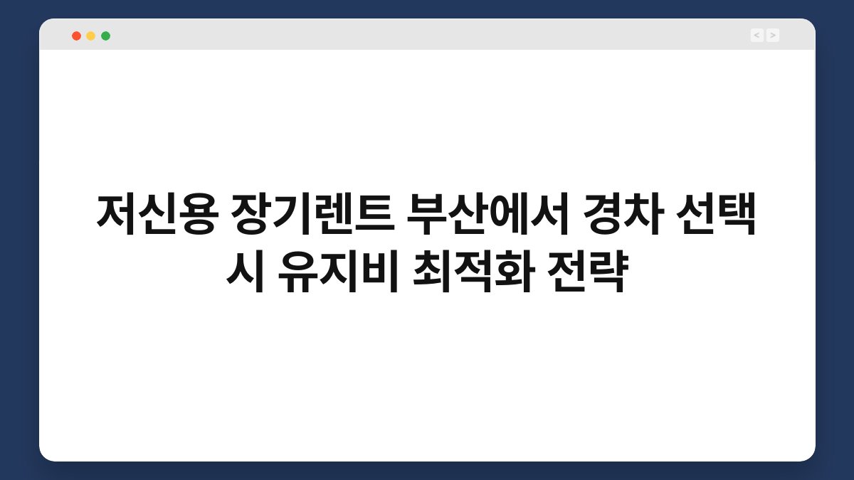 부산에서 저신용으로 장기렌트를 고려하고 계신가요? 경차는 경제적이고 유지비가 적게 드는 차량으로 많은 분들이 선택하고 있습니다. 하지만 저신용으로 장기렌트를 진행할 때는 더욱 신중해야 합니다. 황제오토플랜에서는 저신용 장기렌트를 통해 어떻게 유지비를 최적화할 수 있는지에 대한 전략을 소개하겠습니다. 이 글을 통해 경차 선택 시 유용한 정보를 얻어보세요.