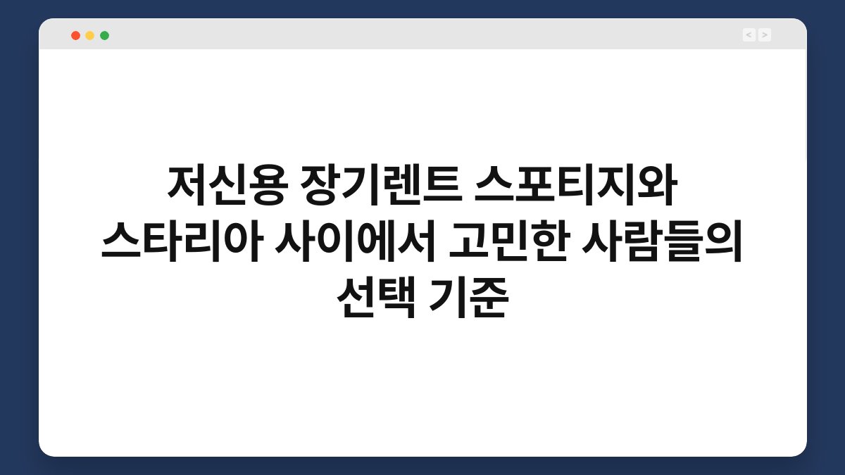 장기렌트를 고려할 때, 저신용자에게 선택의 폭은 좁아질 수 있습니다. 특히 스포티지와 스타리아처럼 인기 있는 차량 사이에서 고민하는 경우가 많죠. 이 글에서는 저신용 장기렌트를 고민하는 분들이 어떤 기준으로 선택하는지, 그리고 황제오토플랜이 어떻게 도움을 줄 수 있는지를 살펴보겠습니다. 여러 가지 요소를 고려하여 최적의 선택을 할 수 있도록 안내해 드릴게요.