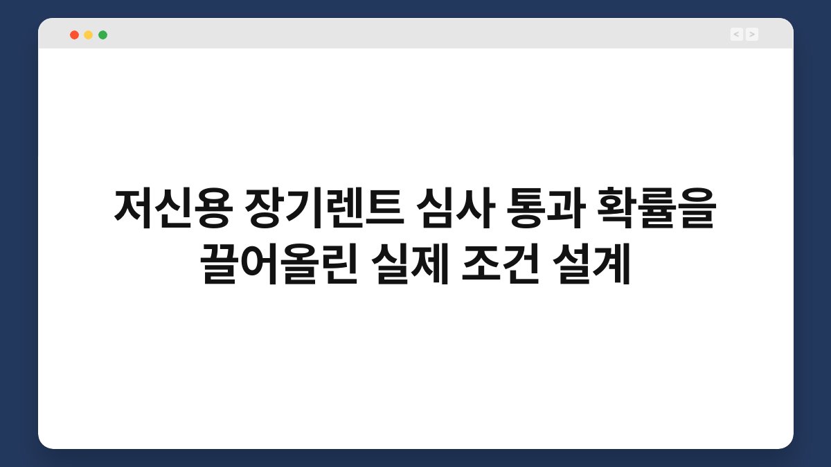저신용자에게 필요한 것은 신용점수 개선과 함께 조건 설계입니다. 예를 들어, 보증금이나 초기 비용을 조금 더 높게 설정하면, 심사에 긍정적인 영향을 미칠 수 있습니다. 이러한 조건을 통해 저신용자도 차량을 이용할 수 있는 기회를 얻을 수 있습니다.