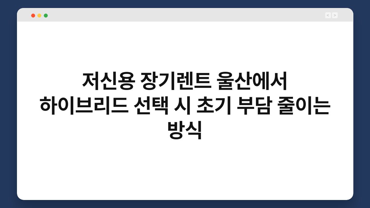 ✅ 저신용 장기렌트로 하이브리드 차량 선택 시 초기 비용 절감 가능