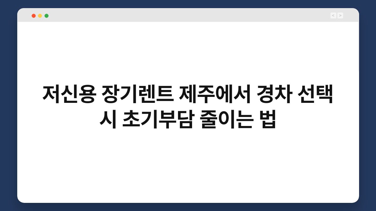 제주에서 저신용 장기렌트를 고려하고 계신가요? 경차 선택 시 초기 부담을 줄이는 방법에 대해 알아보겠습니다. 많은 분들이 차량 구매에 대한 부담으로 고민하고 계시죠. 하지만 저신용으로도 장기렌트를 통해 경제적인 차량 이용이 가능합니다. 특히 황제오토플랜을 통해 다양한 옵션을 활용하면 초기 비용을 줄일 수 있는 방법이 많습니다. 이 글을 통해 저신용 장기렌트와 경차 선택 시 유용한 팁을 제공하겠습니다.