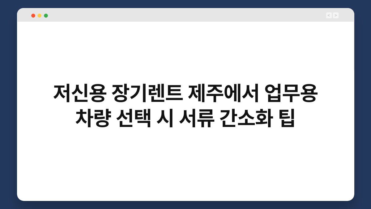 제주에서 저신용으로 장기렌트를 고려하고 계신가요? 업무용 차량을 선택할 때 서류 간소화는 필수적입니다. 복잡한 서류 절차 때문에 고민하고 계신 분들을 위해, 황제오토플랜이 제공하는 간편한 방법을 소개합니다. 저신용 장기렌트의 장점과 함께 서류 준비 팁을 통해 더욱 쉽게 차량을 이용할 수 있는 방법을 안내해 드릴게요. 이 글을 통해 여러분의 고민을 해결해보세요!