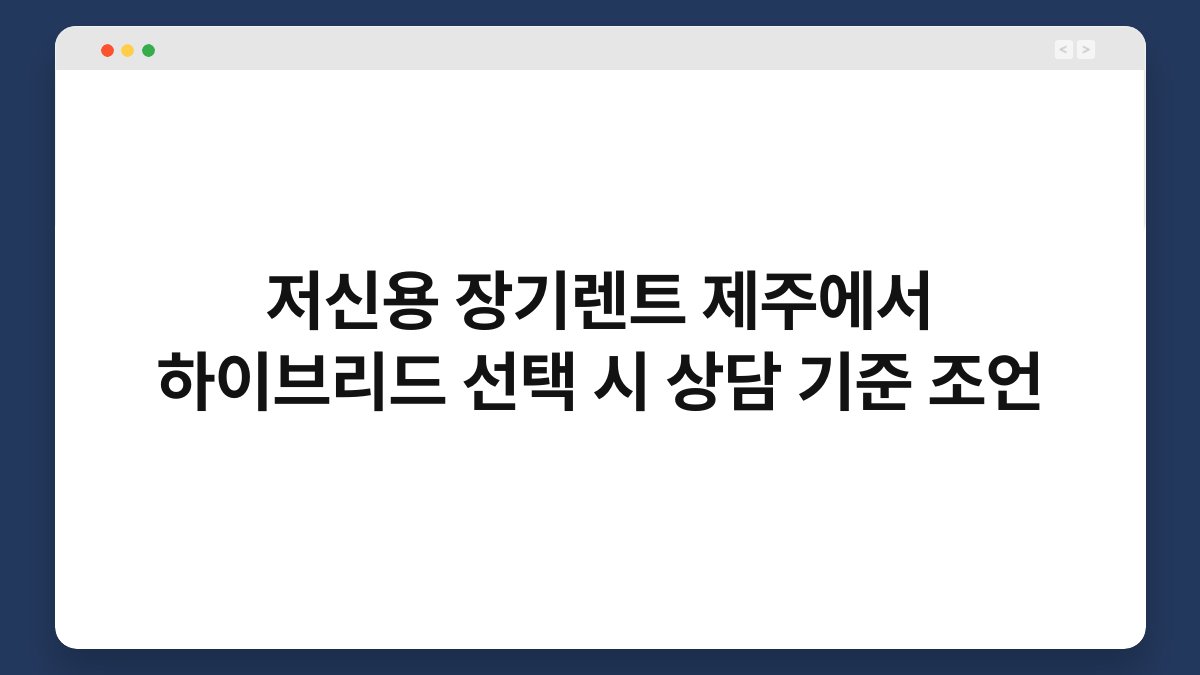 제주에서 하이브리드 차량을 저신용으로 장기렌트하고 싶으신가요? 신용 등급이 낮아도 차를 이용할 수 있는 방법이 존재합니다. 특히, 제주에서의 하이브리드 선택은 환경을 생각하는 동시에 경제적 부담을 덜 수 있는 좋은 선택이죠. 이번 글에서는 저신용 장기렌트와 관련된 상담 기준을 자세히 알아보고, 황제오토플랜을 통해 어떻게 도움을 받을 수 있는지 안내해드리겠습니다.