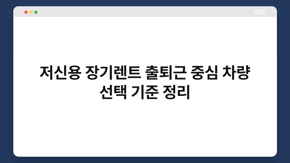 차량을 선택할 때 저신용자에게는 여러 고민이 따릅니다. 특히 리스나 장기렌트를 고려하는 분들은 더욱 신중해야 하죠.…