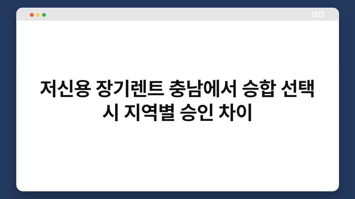 충남 지역에서도 저신용 장기렌트의 승인 기준은 지역에 따라 다를 수 있습니다. 각 지역의 렌트 회사가 설정한 기준에 따라 승인 여부가 달라지기 때문에, 지역별 특성을 이해하는 것이 중요합니다. 예를 들어, 대도시와 소도시의 승인 기준은 상이할 수 있습니다.