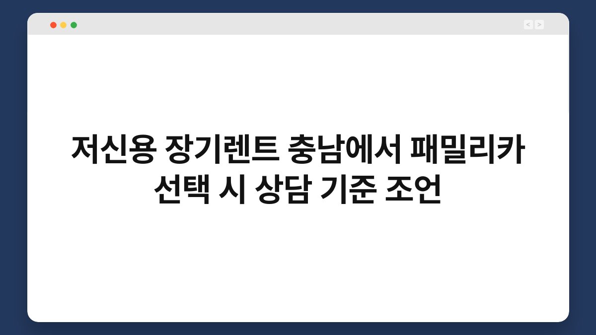 차량 선택이 고민이신가요? 특히 저신용자라면 더욱 신중하게 접근해야 할 부분이 많습니다. 충남에서 패밀리카를 선택할 때, 어떤 기준으로 상담을 받아야 할지 함께 알아보겠습니다. 차량의 종류와 비용, 신용 등급에 따른 조건 등을 고려해야 하며, 황제오토플랜의 도움을 받으면 더욱 유리한 조건으로 장기렌트를 진행할 수 있습니다. 이 글을 통해 저신용 장기렌트에 대한 유용한 정보를 제공하겠습니다.