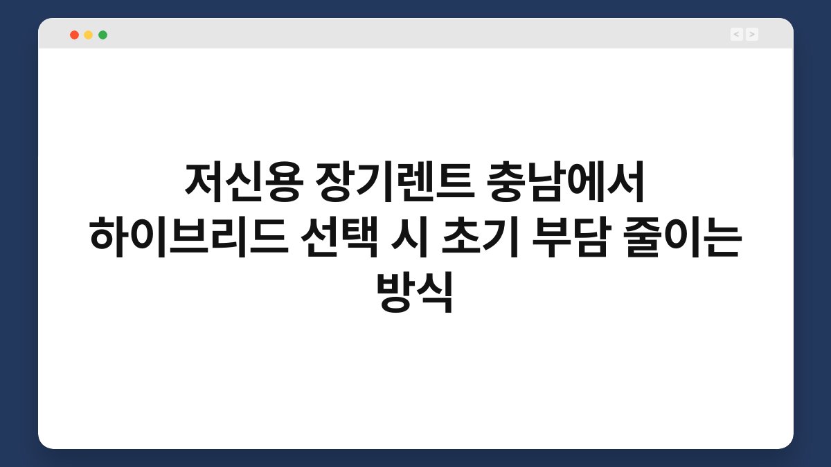 충남에서 저신용으로 장기렌트를 고민하고 계신가요? 하이브리드 차량을 선택하면 초기 부담을 줄이는 여러 가지 방법이 있습니다. 특히, 황제오토플랜을 통해 저신용 장기렌트를 이용하면 더욱 유리한 조건으로 차량을 이용할 수 있습니다. 이 글에서는 저신용 장기렌트의 장점과 하이브리드 차량 선택 시 초기 비용 절감 방법에 대해 알아보겠습니다. 마지막까지 함께 해주세요!