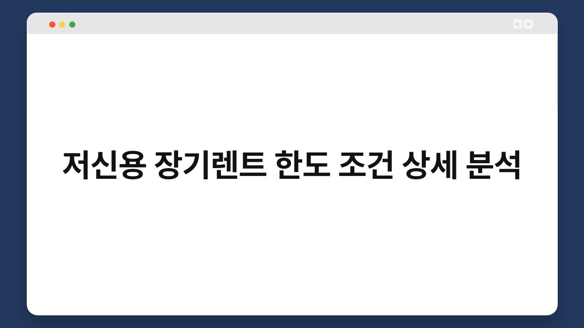 저신용 장기렌트는 신용 등급이 낮은 사람도 차량을 장기적으로 렌트할 수 있는 서비스입니다. 일반적인 렌트와 달리, 저신용자에게도 접근할 수 있는 조건을 제공합니다. 이로 인해 차량 소유의 기회를 넓히고, 경제적 부담을 줄일 수 있습니다.