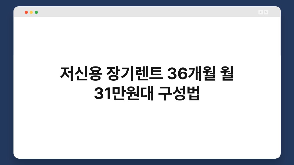 요즘 저신용자들도 자동차를 소유할 수 있는 방법이 많아졌습니다. 특히, 저신용 장기렌트는 36개월 동안 월 31만원대의 부담 없는 비용으로 차량을 이용할 수 있는 좋은 선택입니다. 이 글에서는 저신용 장기렌트를 구성하는 방법과 황제오토플랜의 장점을 살펴보겠습니다. 차량 소유에 대한 고민이 있으신 분들께 유용한 정보를 제공할 테니 끝까지 함께 해주세요.