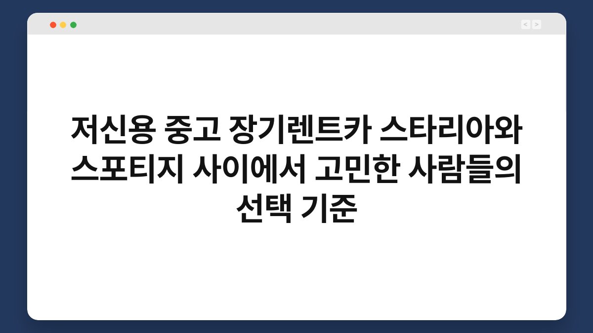 차량을 소유하는 것은 큰 결정입니다. 특히 저신용으로 중고차 장기렌트를 고려하는 경우, 선택의 폭이 좁아질 수 있습니다. 많은 사람들이 스타리아와 스포티지 중에서 고민하는 이유는 이 두 차종이 각각의 장점을 가지고 있기 때문입니다. 이 글에서는 저신용 중고 장기렌트카를 선택할 때 고려해야 할 기준과 황제오토플랜의 도움을 받을 수 있는 방법을 소개하겠습니다. 여러분의 선택이 보다 쉽고 만족스러울 수 있도록 도와드릴게요.