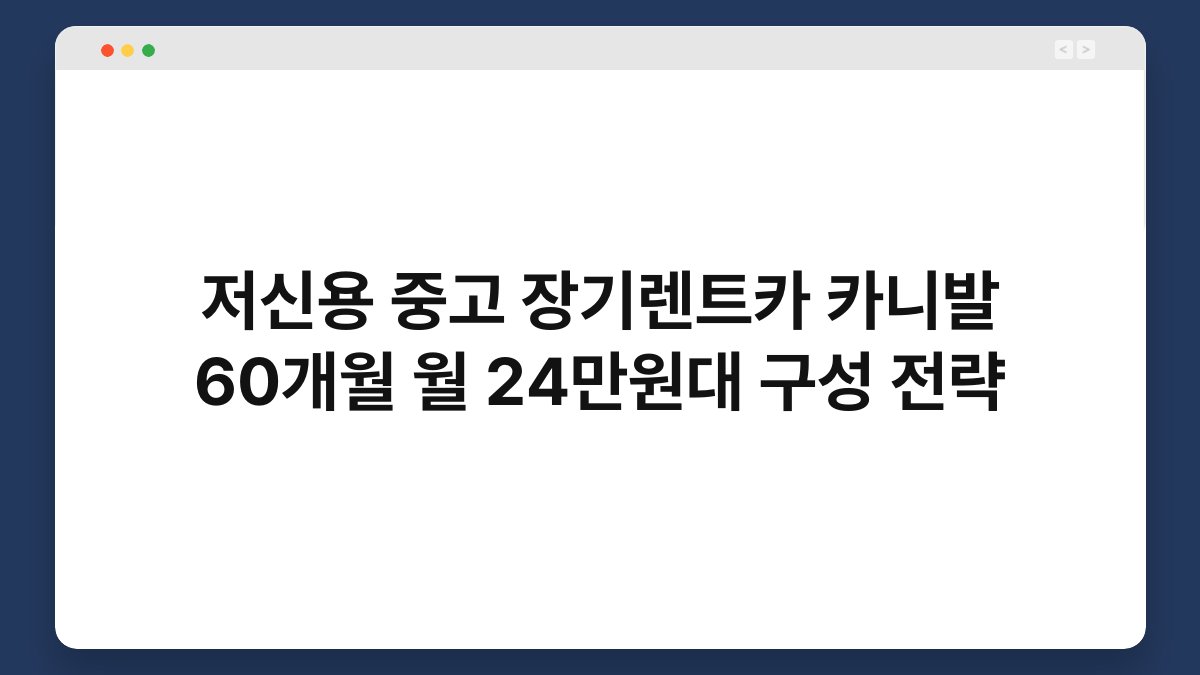 요즘 저신용자도 차량을 소유할 수 있는 방법이 많아졌습니다. 특히 중고 장기렌트카는 저신용자에게도 적합한 옵션으로 떠오르고 있습니다. 오늘은 카니발을 60개월 동안 월 24만원대에 이용할 수 있는 구성 전략에 대해 알아보겠습니다. 황제오토플랜을 통해 저신용자도 부담 없이 차량을 이용할 수 있는 방법을 소개할게요.