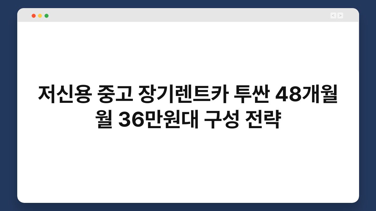 차량 구매를 고민하는 분들, 혹은 저신용으로 인해 어려움을 겪고 계신 분들께 희소식이 있습니다. 요즘 중고차 시장에서 저신용자도 중고 장기렌트카를 이용할 수 있는 기회가 늘어나고 있습니다. 특히 현대 투싼을 48개월 동안 월 36만원대에 렌트할 수 있는 구성 전략을 통해, 부담 없이 차량을 이용할 수 있는 방법을 소개하고자 합니다. 황제오토플랜과 함께라면 더욱 간편하게 이 모든 과정을 진행할 수 있습니다.
