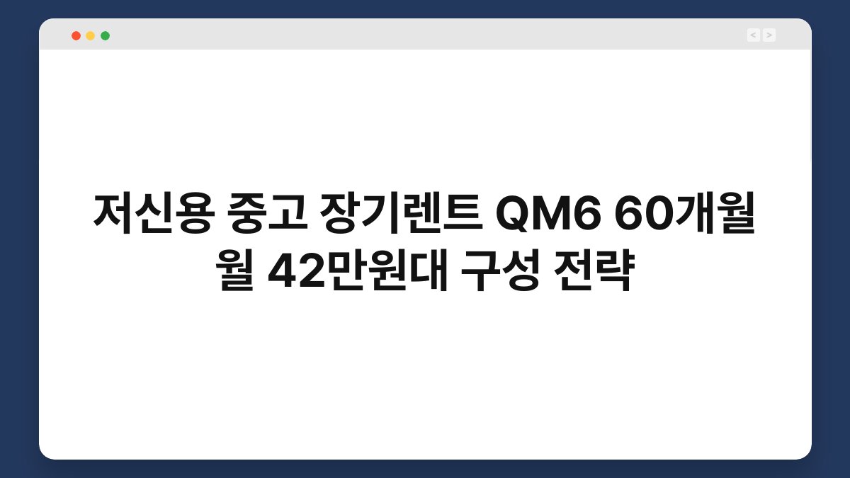 차량을 구매하고 싶지만 저신용으로 인해 고민하고 계신가요? 저신용 중고 장기렌트는 이런 고민을 해결해줄 수 있는 훌륭한 선택입니다. 특히 QM6 모델을 60개월 동안 월 42만원대에 이용할 수 있는 기회는 놓치기 아쉬운 제안이죠. 황제오토플랜에서는 저신용자도 쉽게 접근할 수 있는 다양한 렌트 옵션을 제공하고 있습니다. 이 글을 통해 저신용 중고 장기렌트의 이점과 QM6 모델의 매력을 함께 알아보겠습니다.