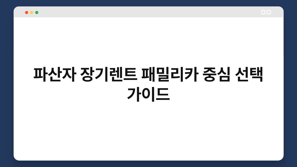 차량 구매를 고민하는 많은 분들이 장기렌트라는 선택지를 고려하고 있습니다. 특히, 파산자나 저신용자로서 차량을 소유하고 싶지만 어려움을 겪고 계신 분들께는 장기렌트가 훌륭한 대안이 될 수 있습니다. 패밀리카를 중심으로 한 장기렌트는 가족의 이동 수단을 안정적으로 제공하며, 비용 부담도 덜어줍니다. 이번 글에서는 파산자에게 적합한 장기렌트 선택 가이드를 제공하며, 황제오토플랜의 다양한 혜택도 함께 살펴보겠습니다.