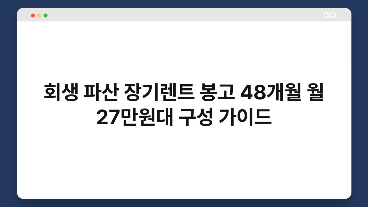 장기렌트는 차량 구입의 부담을 줄일 수 있는 좋은 방법입니다. 특히 회생이나 파산으로 어려움을 겪고 있는 분들에게는 더욱더 유용할 수 있습니다. 이번 글에서는 봉고 차량을 48개월 동안 월 27만원대의 부담 없는 구성으로 이용할 수 있는 방법을 소개하겠습니다. 황제오토플랜과 함께라면 저신용자도 걱정 없이 장기렌트를 시작할 수 있습니다. 이 가이드를 통해 필요한 정보를 한눈에 확인해보세요.
