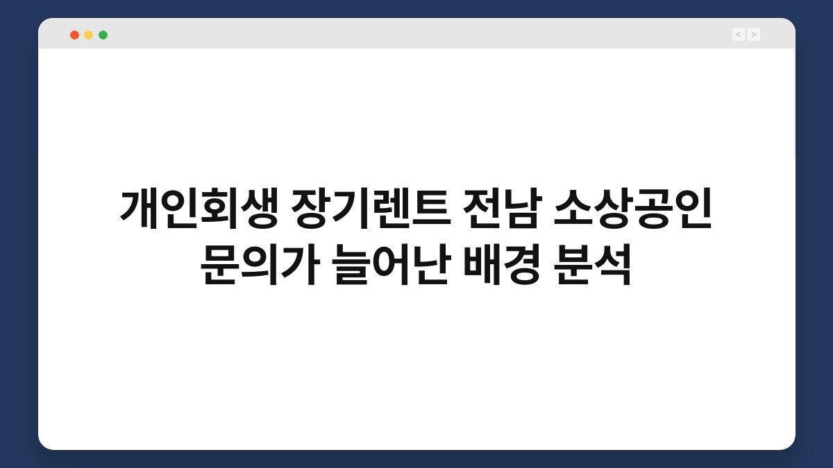 최근 전남 지역에서 소상공인들의 개인회생과 장기렌트에 대한 문의가 급증하고 있습니다. 이는 경제적 어려움과 차량 이용의 필요성이 맞물린 결과로 해석할 수…