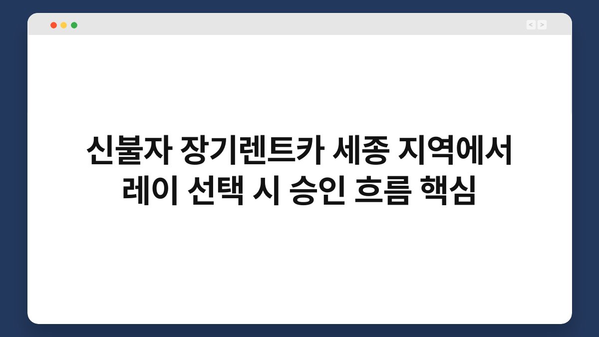 신용이 좋지 않아 자동차를 구매하는 것이 부담스럽다고 느끼신 적이 있나요? 특히 세종 지역에서 장기렌트카를 고려하는 신불자분들은 더욱 고민이 많을 수 있습니다. 하지만 이제는 걱정하지 않으셔도 됩니다. 황제오토플랜을 통해 신불자도 장기렌트카를 쉽게 이용할 수 있는 방법과 승인 흐름을 안내해 드리겠습니다. 특히, 세종 지역에서 인기 있는 레이 모델을 선택할 경우 어떤 점을 유의해야 할지 함께 살펴보겠습니다.