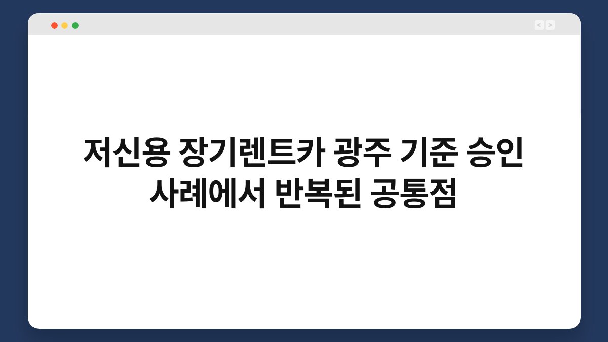 장기렌트카를 고려할 때 저신용자에게는 여러 가지 고민이 따릅니다. 특히 광주 지역에서 저신용 장기렌트카를 이용하려는 분들은 승인 사례를 통해 어떤 공통점이 있는지 궁금하실 텐데요. 이 글에서는 저신용 장기렌트카의 승인 사례에서 반복되는 특징을 살펴보며, 황제오토플랜이 어떻게 도움을 줄 수 있는지 알아보겠습니다. 저신용자도 차량을 이용할 수 있는 현실적인 방법을 제시해 드릴게요.